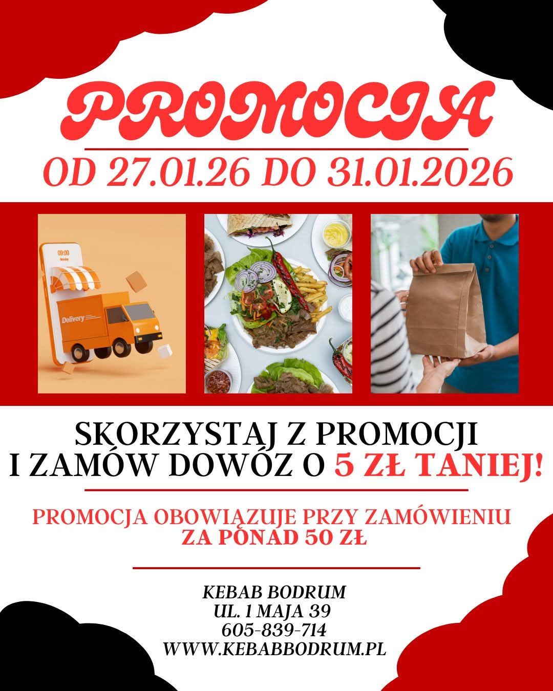 Zamów u nas od dziś do końca Stycznia powyżej 50 zł. wykorzystaj w koszyku 5 zł rabatu. Promocja obowiązuje w: Na miejscu, dostawa i odbiór osobisty